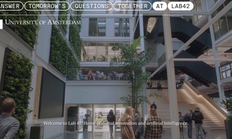 LAB42 is more than just another new building. It is meant to create a new ecosystem. 'Our mission is to do three things', says the director of the Informatics Institute Alfons Hoekstra, 'top education, top research and impactful valorisation. This is the first time we have all those three functions together in one building. The third floor houses the co-creation space. Above that, are three floors with academic research, and below are all the teaching spaces. We easily meet in this building. It feels like a unity, that we have never had before. Education and research is of course what we have traditionally been doing. The third function, valorisation is relatively new, so it is exciting to see how it will play out to have it under one roof.'